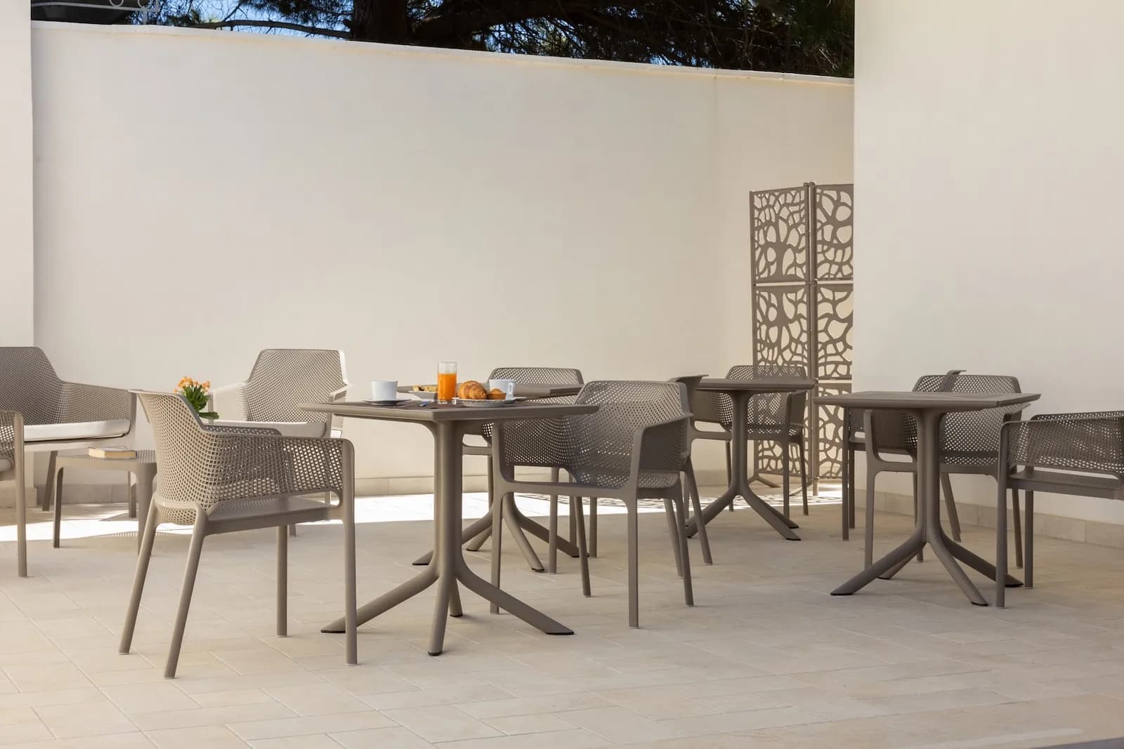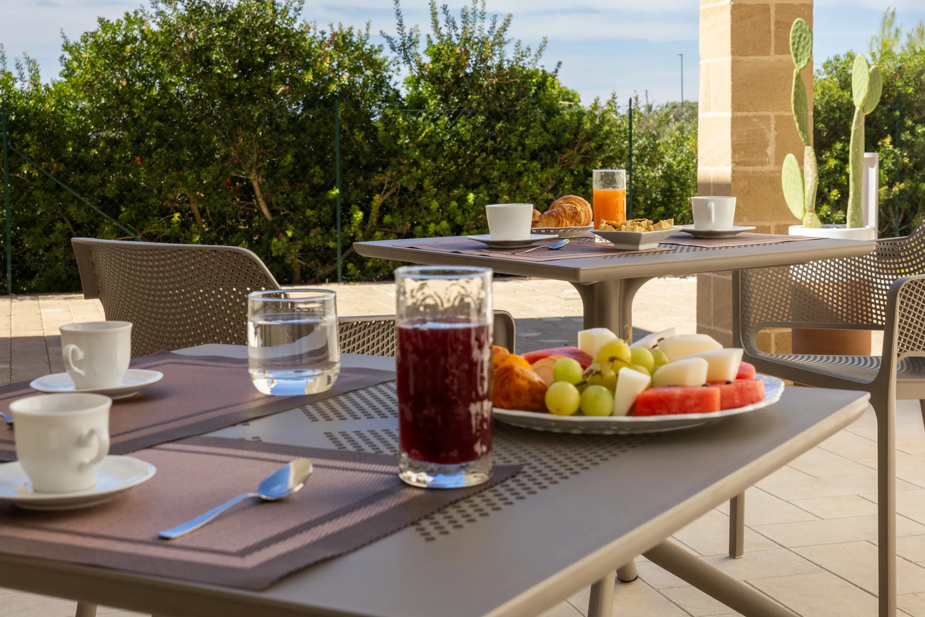 Uno spazio esterno accogliente e ombreggiato, pensato per i momenti più piacevoli della giornata. Tra tavolini e un comodo divanetto da esterno, è il luogo ideale per gustare la colazione all’aria aperta o concedersi una pausa di relax al fresco. Un angolo intimo e rilassante, perfetto per iniziare la giornata con calma o per godersi attimi di tranquillità immersi nella quiete della tenuta.